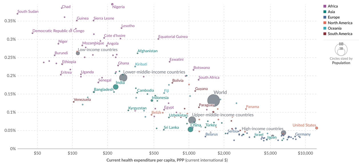אי-שוויון בתוחלת חיים לעומת הוצאות בריאות לנפש, 2022