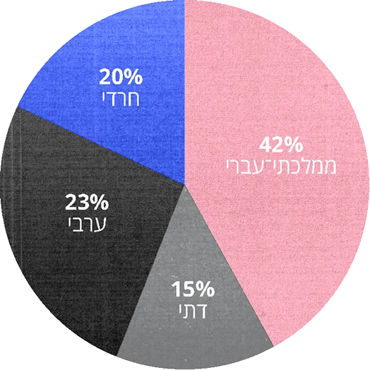 מעבר לכך, מערכת החינוך בישראל מחולקת לארבע מערכות נפרדות: ממלכתית, ממלכתית-דתית, חרדית וערבית. חלוקה זו יוצרת פערים חינוכיים ותרבותיים עמוקים בין קבוצות האוכלוסייה, כאשר כל מערכת פועלת כמעט באוטונומיה מוחלטת, עם תכניות לימודים ייחודיות, תקציבים שונים ורמות חינוך משתנות. הפיצול מקשה על יצירת זהות חינוכית לאומית משותפת, מעמיק את הקיטוב החברתי ומשפיע באופן ישיר על רמת ההכשרה והיכולת של תלמידים להתמודד עם אתגרי העתיד בעולם תחרותי.