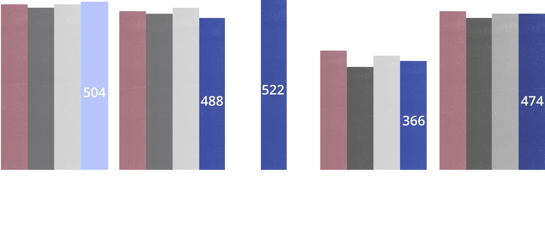 ממוצע הישיגים במבחני PISA (קריאה), בני 15, לפי זרמים